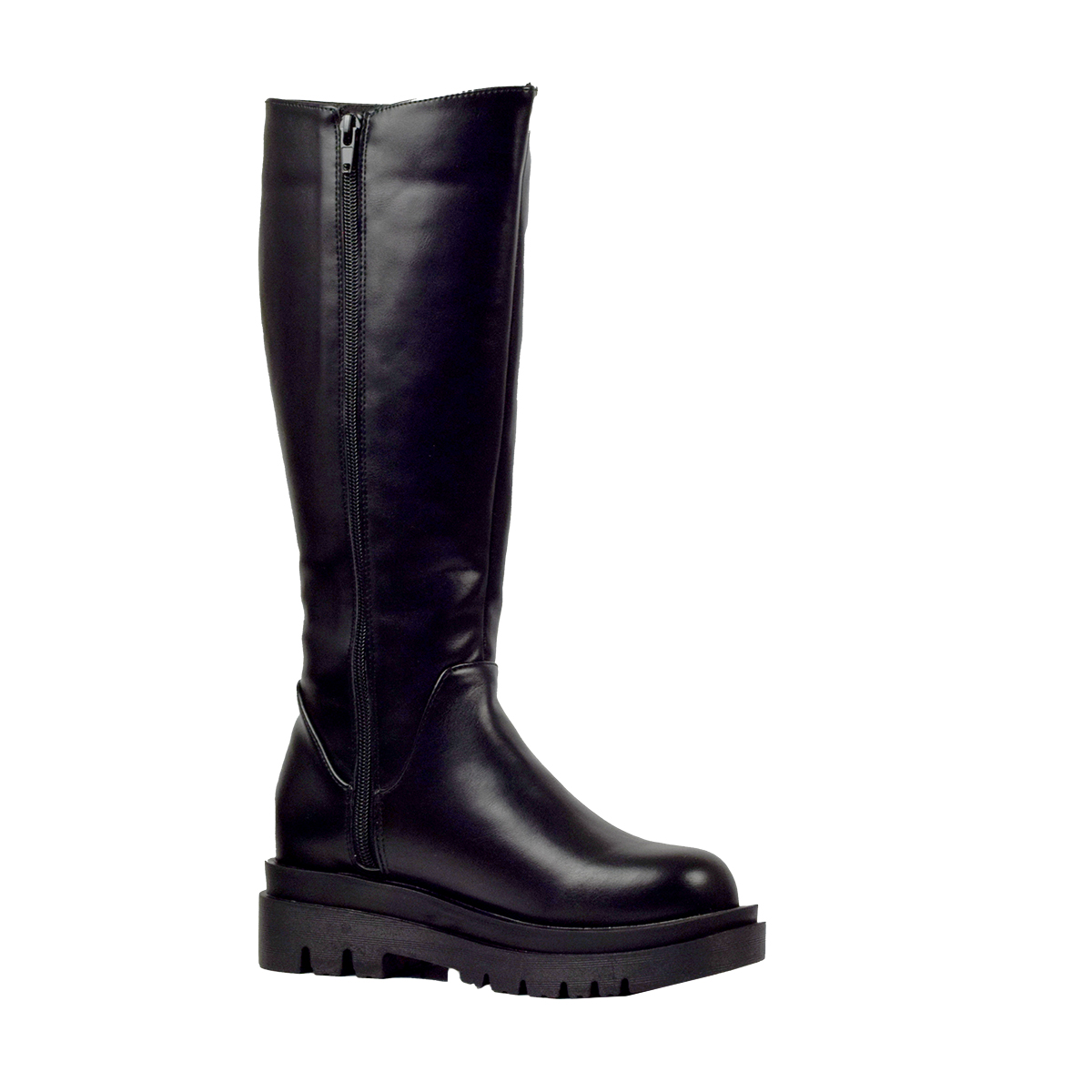 ・人気の厚底ストレッチロングブーツのブラックが仲間入り!